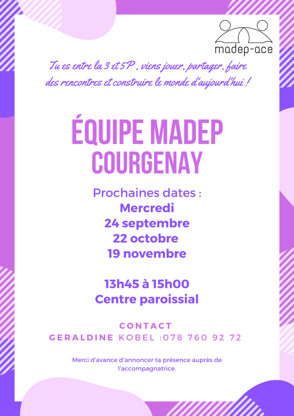 Le MADEP est un Mouvement d’Action Catholique constitué de filles et de garçons, entre 6 et 16 ans, accompagnés par de jeunes bénévoles. Il est présent dans l’Eglise catholique du Jura pastoral, mais aussi dans les cantons romands et dans plus de 40 pays répartis dans le monde (appelé MIDADE au niveau international).